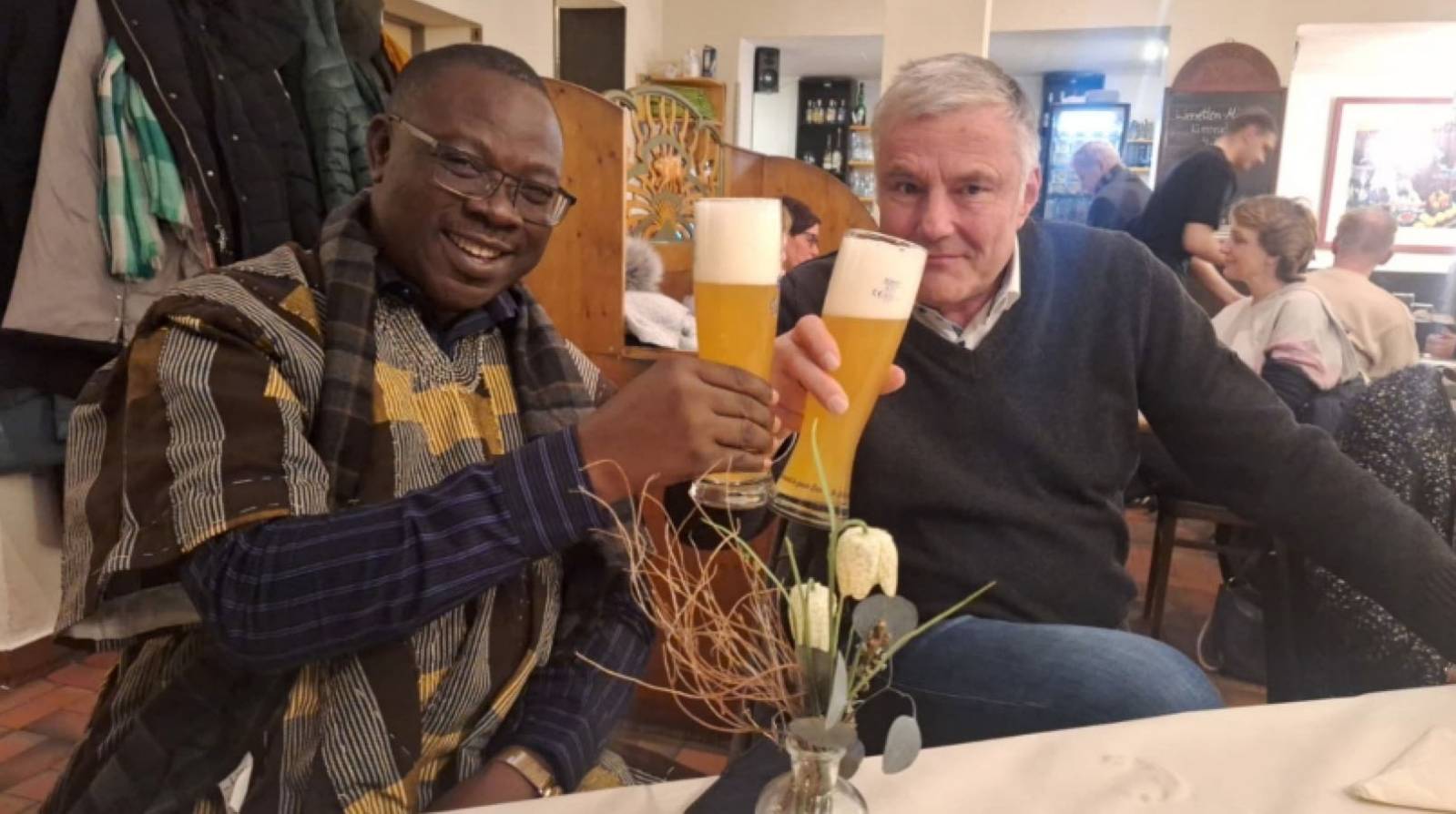 Mit Dr. Andreas Becke, dem Vorstand Finanzen und Infrastruktur des Klinikums und dem Direktor der Direktion der Berufsbildung Herrn Etienne Kabassima, der im togoischen Ministerium tätig ist, sitzen hier zwei Entscheidungsträger beisammen, deren Zusammenwirken eine wesentliche Grundlage für die Weiterführung der Partnerschaft bildet .